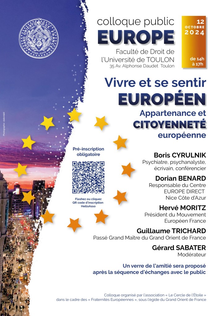 Le 12 octobre 2024 à 14h, l’association Le Cercle de l’Étoile accueillera un colloque public intitulé “Vivre et se sentir Européen“.